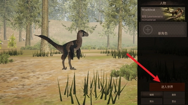 4、创建完成后选中自己的恐龙,就能进入世界了。