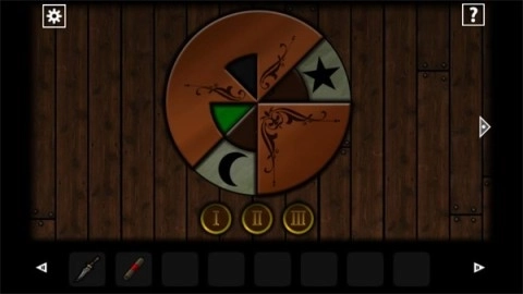 8、进入设有旋转转盘的房间后,点击墙上的转盘,按照图示完成调整,之后后方的门就会打开。