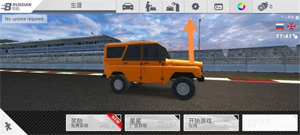 5、界面仅提供基本的油门与刹车选项,车辆的前进、后退以及方向盘控制则通过体感操作实现,具体方式为晃动手机。