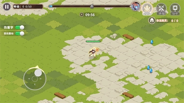 3、正式开始后,左侧负责操控角色的移动,角色会自动攻击出现的怪物敌人。
