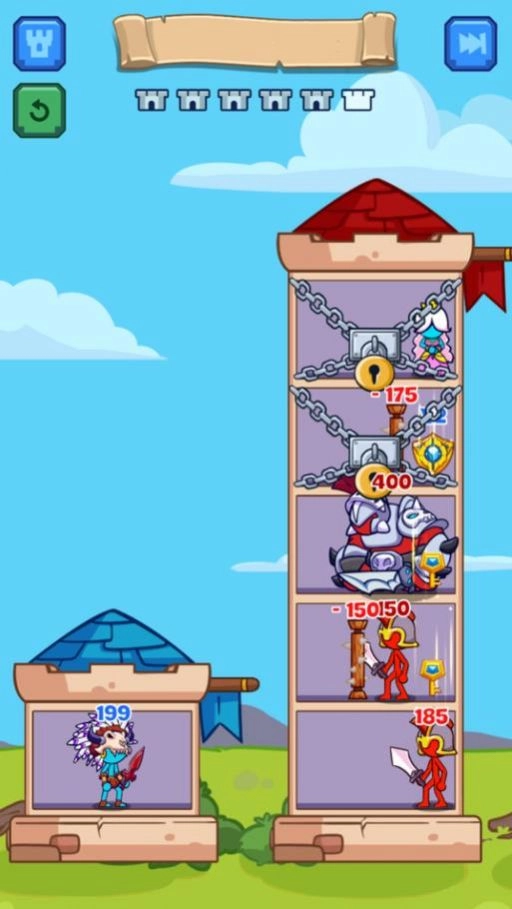 火柴人塔战游戏是一款关于火柴人题材的动作塔战游戏,很多火柴人角色,可以随意挑选,具有各自独特的在技能,从低层级的塔楼开始挑战,击败众多怪物和敌人,才能收获大量的金币,发挥自己最强大的能力,去建造高楼,体验刺激的玩法,不断升级,进入塔楼顶端,成功营救公主,获取宝藏。