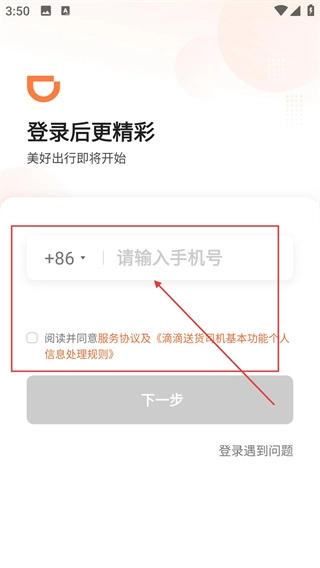 在登录页面,输入手机号并勾选同意相关协议后,即可进入后续操作步骤。
