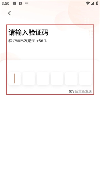 在验证码页面,输入发送至手机号的验证码,以完成登录流程。
