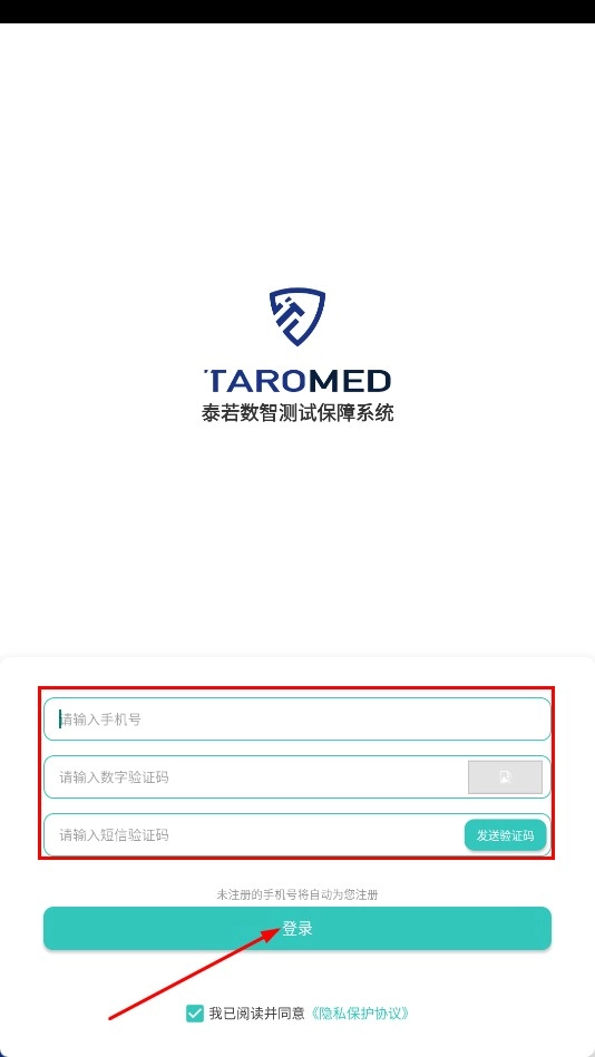 在登录页面依次填写手机号、数字验证码与短信验证码,随后点击【登录】功能按钮,即可完成登录操作。