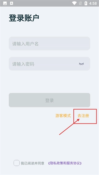 在登录账户页面,如果还没有账号,点击“去注册”按钮,就能跳转到注册账号页面。