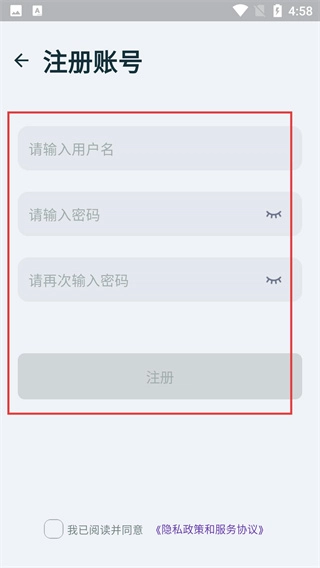 在账号注册页面,检查信息是否填写完整并勾选同意协议选项后,点击“注册”按钮,即可完成账号注册流程。