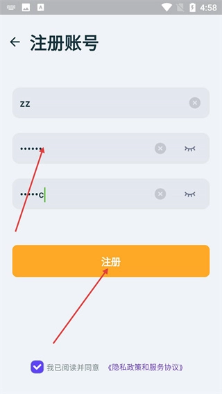 在账号注册页面,需要按顺序填写用户名、密码以及再次输入密码,以此完成信息的录入。