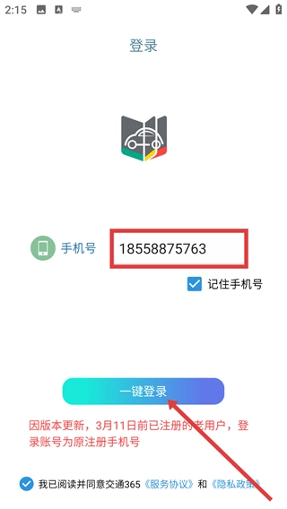 在登录页面输入手机号后,点击【一键登录】按钮,就能登录该应用。