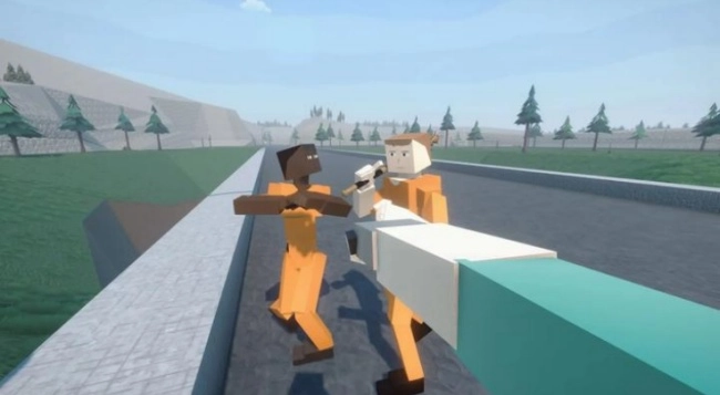 玩家可以自定义角色,进行角色扮演。在游戏中,玩家可以滑动屏幕控制视角,通过左边的隐形轮盘前进,右下角按钮跳跃,点击拳头攻击。