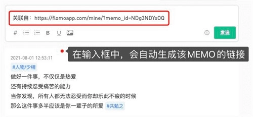 输入框中会自动生成该条MEMO的链接;