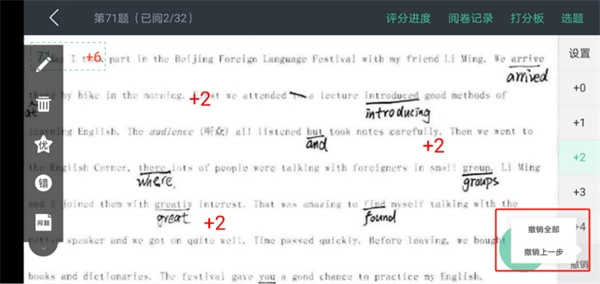 要是不小心点错位置,或者在加分、减分操作时出现失误,都能点击【撤销】按钮,此时会弹出【撤销全部】和【撤销上一步】两个选项,大家可以依据自身需求来选择使用。