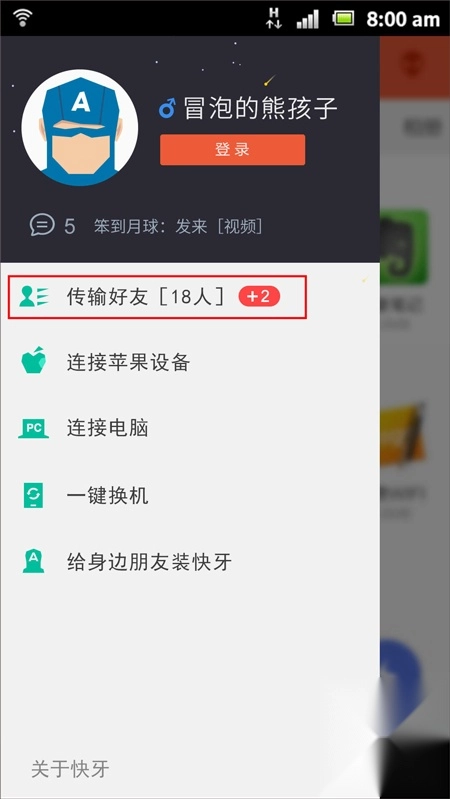 2、连接过的朋友会成为传输好友,找到需要传输的好友,选择对应的好友