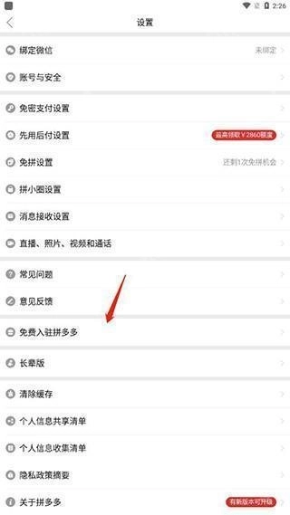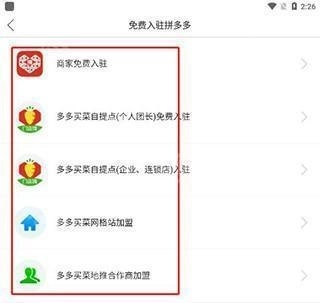 2、在设置中找到免费入驻拼多多;