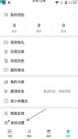 2、在我的页面,找到【系统设置】栏目。