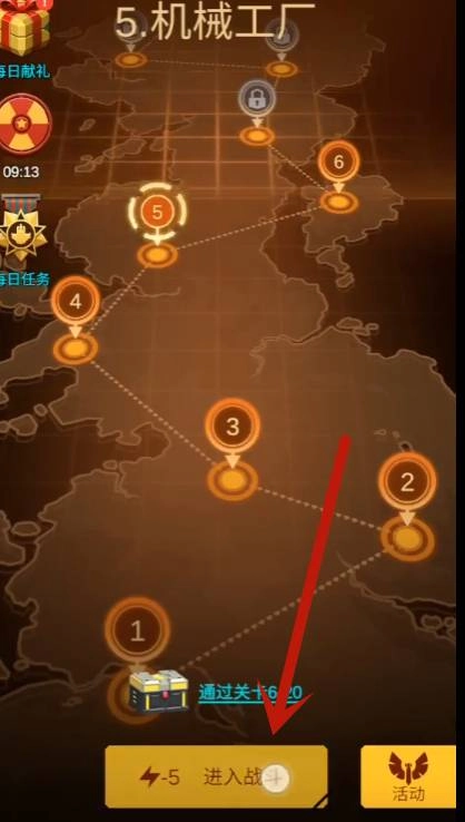 1:进入第五关后,点击“进入战斗”按钮即可开启本关的挑战任务。