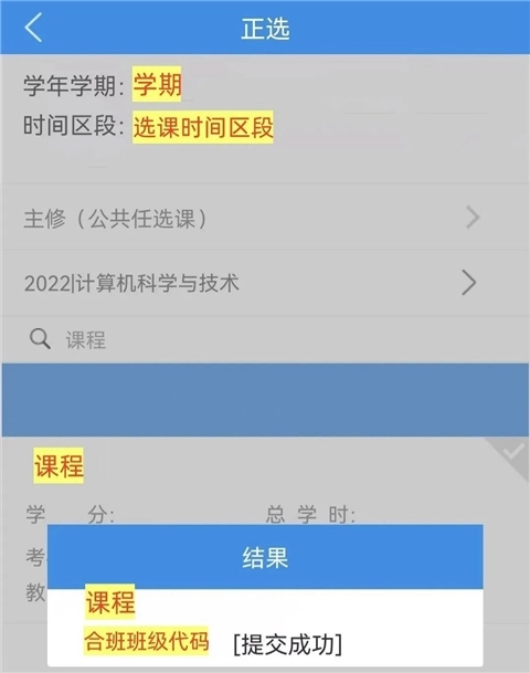 7、出现提交成功提示即选课成功!