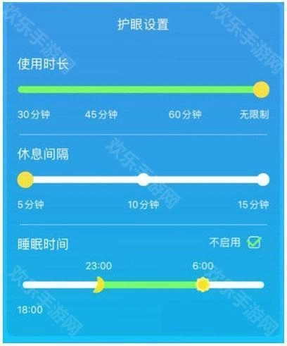 第三步:进入设置页面后,可对休息间隔与睡眠时间进行设置。完成设置后,宝宝在设定的时间段内将无法收听故事,并且界面上也会显示对应的提示信息。