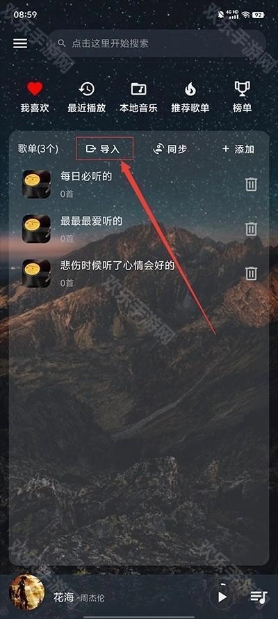2、其次,点击“导入歌单”选项;