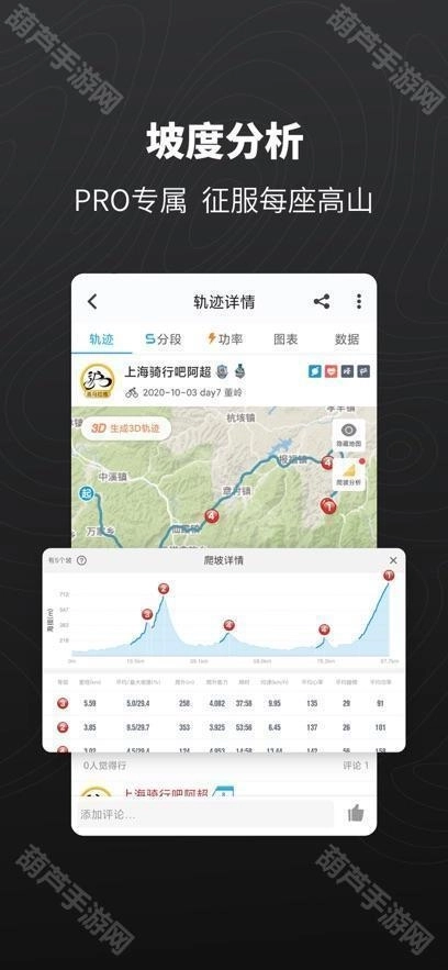 2.通过语音提示转弯信息,并对坡度进行预警,借助3D地形视图辅助应对复杂路况。