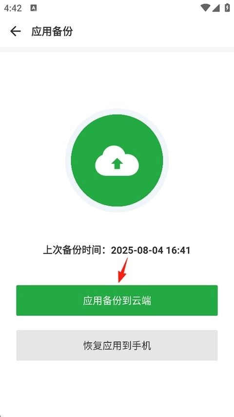 2、点击应用备份到云端;