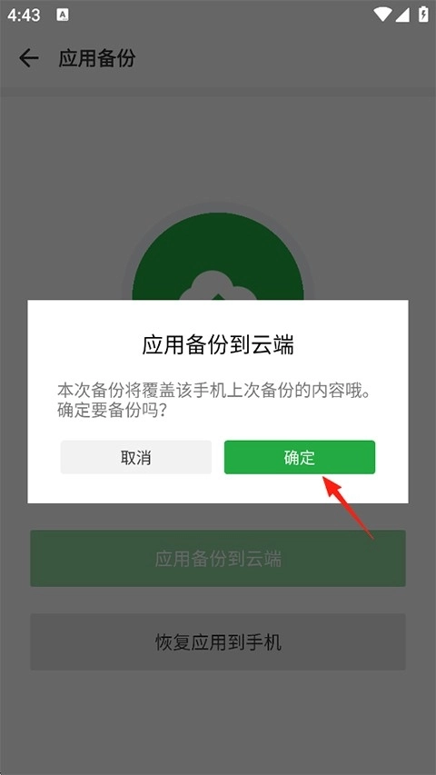 3、本次备份操作会把您手机里的所有应用都备份并保存到云端,请点击确定;