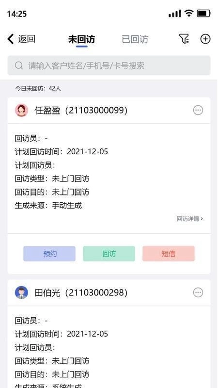 1、回访管理分为未回访与已回访两类,可对回访计划进行调整,也能发送相关短信。