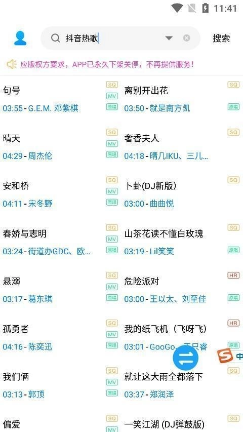 4.您能够借助关键字进行快速搜索,此外它还包含抖音以及多种热门音乐类别。