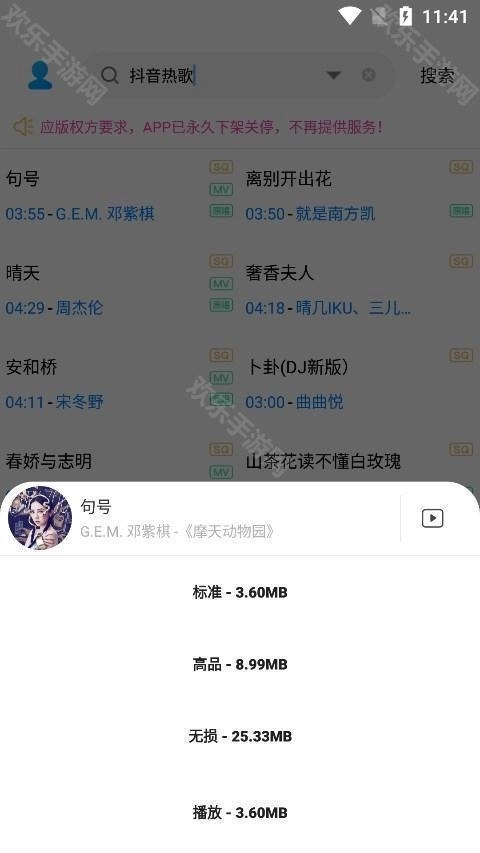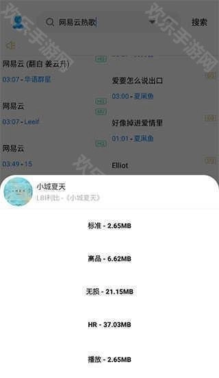 3.丰富的资源触手可及。用户能够借助关键词迅速定位到自己想听的音乐,平台还提供了多种音质选择。