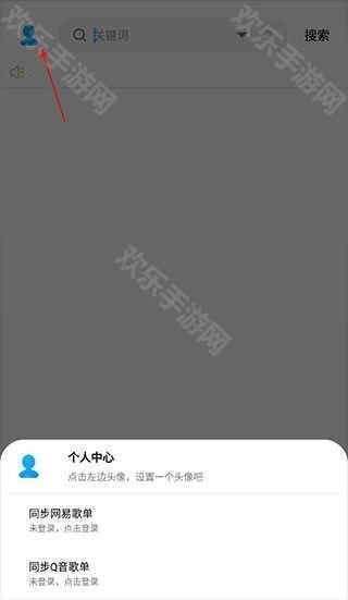 8、当然,该软件支持登录功能。您只需点击左上角的头像,就能弹出个人中心界面,接着选择想要同步的歌单类型即可完成操作。