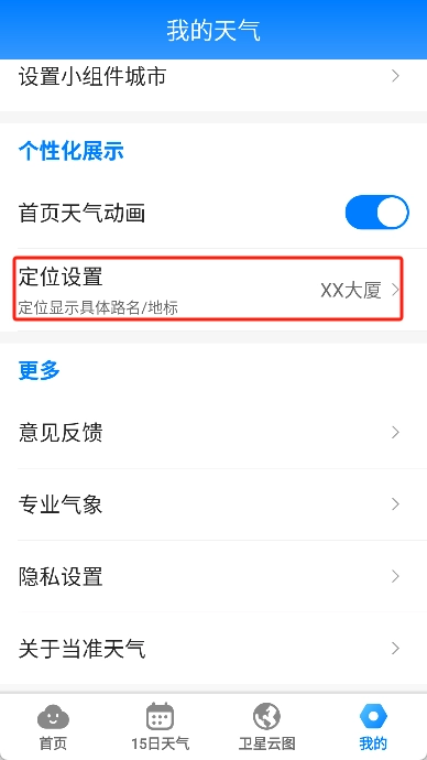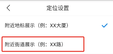 3、在定位设置页面中点击“附近街道展示”选项设置。