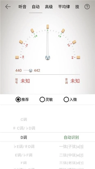 可选择“自动识别”、或“手动按弦号识别” (即手动选择1-4弦中的任意一根弦)