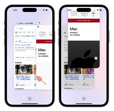 3、界面左下角设有分页按钮,点击该按钮就能展示当前所有已开启的分页;若要关闭分页,只需按住目标分页并向上滑动即可。以上便是Arc Search的基础操作逻辑,接下来让我们了解Arc Search的核心功能——「AI搜索」。