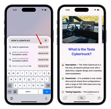 12365网以「what is cybertruck(什么是Cybertruck)」为例,点击「Browse for Me」后等待约3到5秒,便会生成一个整合了网络上所有相关信息的页面。
