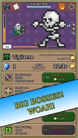 可以让空间更显清爽,搬家时也能派上用场,是一款不错的休闲选择。这是一款划时代的休闲RPG,能带你开启简单、有趣且永无止境的冒险!只需点击就能击败怪物,雇佣并升级英雄,解锁独特技能。与怪物战斗来赚取金币,寻找宝藏,一同探索这个全新世界!点击挥剑,点击击杀魔兽,点击收集金币,点击招募志同道合的英雄!点击释放强大技能,点击解锁强力光环,点击召唤神秘神器!