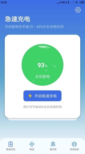 -接通电源打开应用,一键进入快充界面,关闭耗电应用,加速优化充电时长。
