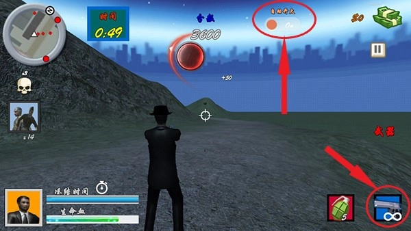 玩家点击右下角的手雷图标就能扔出手雷,能够直接炸死一群敌人。