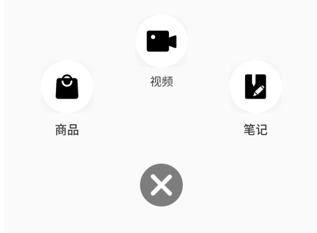 2、在弹出的商品、视频、笔记中选择类型;
