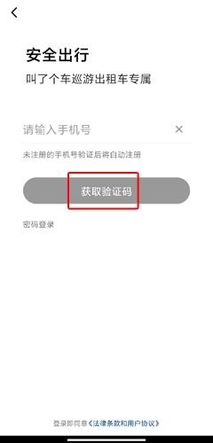 1、用户启动软件后,输入手机号码,接着点击获取验证码的按钮;