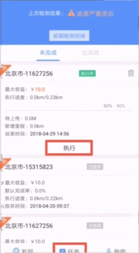 2、进入任务列表,点击“执行”。