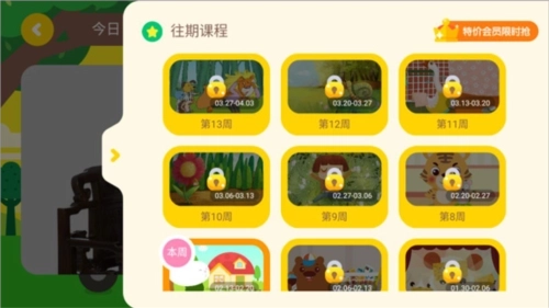 2、点击“全部课程”进入课程页面后,用户能够查看本周内需完成学习的课程安排,具体包括周一的数学、周二的绘本阅读、周三的音乐等内容。