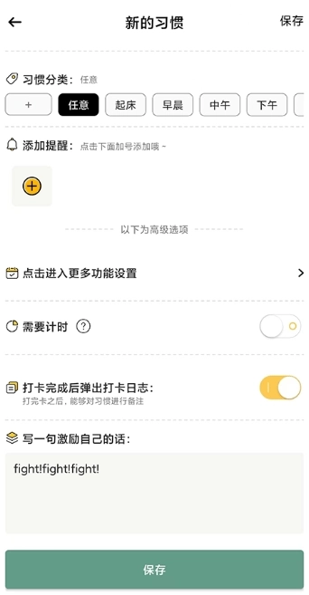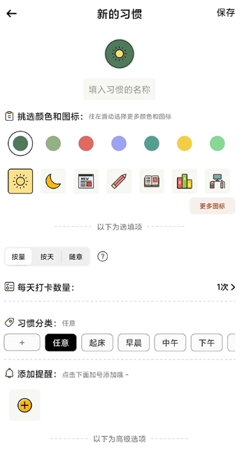 2、支持添加多种习惯分类用于打卡,并能对其进行详细的设置调整