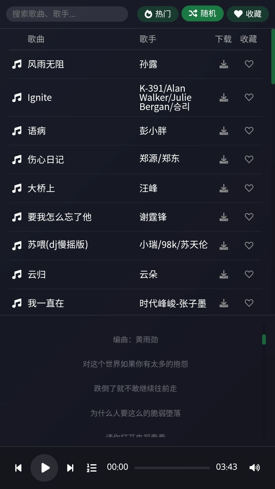 直接选择查找感兴趣的歌曲