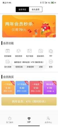 然后我们点击开通会员,进入会员办理界面,选择办理的时间期限——一个月、六个月、一年或是两年。