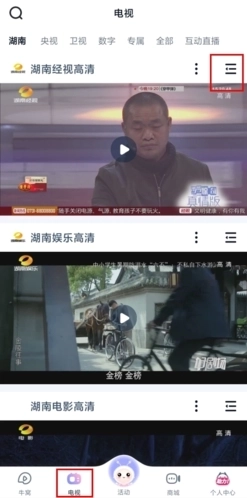 1、在电视页面中点击视频右侧的三按钮;