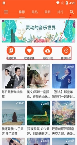 1、在柚子音乐里,用户第一步可以通过右上角的搜索功能查找自己想听的歌曲;