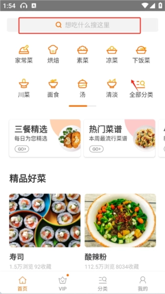 1、用户进入本站后,可直接挑选自己心仪的菜谱,也能通过搜索栏进行搜索,这里我们以家常菜为例。