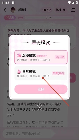3、聊天过程中,若想快速切换到目标模式,可点击右上角的模式切换按钮;像日常模式,就能实现快速响应。