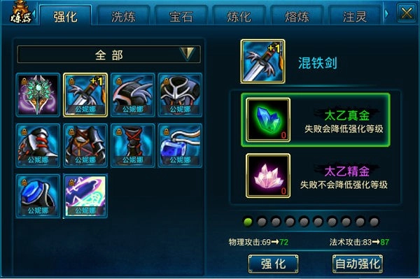 在《蜀山传奇变态版》里,玩家能依据自身实际情况,对装备与法宝开展强化操作。其中,使用五行真金和太乙真金强化时,若强化失败,装备或法宝的等级会下降;而使用五行精金和太乙精金强化,即便失败也不会导致等级降低。所以建议大家在装备或法宝强化到+4之后,再使用五行精金和太乙精金来进行后续强化。