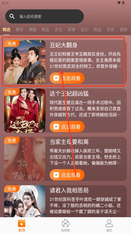 1、在首页选择自己感兴趣的短剧内容;