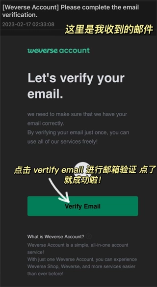 10、点击“vertifyemail”完成邮箱验证,点击后即验证成功!